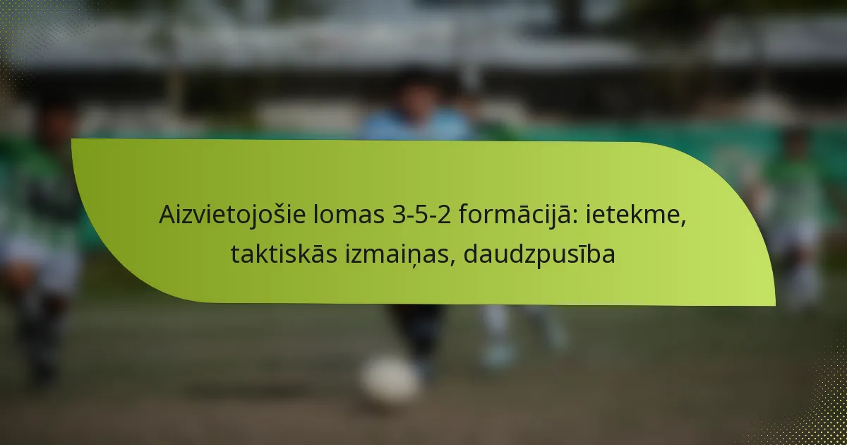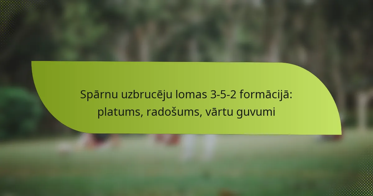 3-5-2 formācijā maiņu spēlētāji ir būtiski, lai iedvestu jaunu enerģiju un taktisku elastību spēlē. Viņu spēja pielāgot lomas un atbildības var radīt būtiskas izmaiņas aizsardzības stabilitātē, viduslauka kontroles un vārtu gūšanas iespējās, kas galu galā ietekmē mača iznākumu. Key sections in the article: Toggle Kādas lomas ieņem maiņu spēlētāji 3-5-2 formācijā? Aizsardzības maiņu spēlētāji un viņu ietekme uz aizsardzības stabilitāti Viduslauka maiņu spēlētāji un viņu loma bumbas kontrolē Uzbrukuma maiņu spēlētāji un viņu ietekme uz vārtu gūšanas iespējām Specializētas lomas maiņu spēlētājiem dažādās mača situācijās Salīdzinājums starp maiņu spēlētāju lomām un sākuma spēlētājiem Kā maiņu spēlētāji ietekmē spēli 3-5-2 formācijā?…