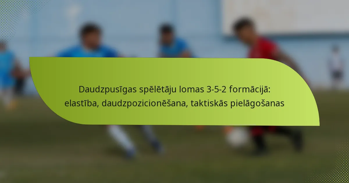 3-5-2 formācijā lomu aizvietošana traumu gadījumā ir būtiska, lai saglabātu komandas dinamiku un sniegumu, kad galvenie spēlētāji nav pieejami. Efektīvi aizvietotājiem jābūt pielāgojamībai un taktiskai izpratnei, lai bez piepūles iekļautos esošajā struktūrā, nodrošinot, ka komandas stratēģija paliek saskaņota. Izmantojot spēlētāju daudzpusību un uzlabojot komunikāciju, komandas var pārvarēt traumu radītās grūtības, saglabājot savu konkurētspēju.